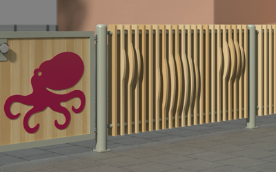 De directe wisselwerking die met het publiek wordt gezocht, doordat ze een actieve verhouding met de kunstwerken kunnen aangaan, is het uitgangspunt voor het werk Sono, Twister & Catwalk van Marry Overtoom (1957). Op het schoolplein aan de Kouwenhovenakker heeft ze drie groepen van uitvergrote dominostenen geplaatst. Lichtspots (LEDs) reageren op aanwezigheid van de kinderen op het podium, en er kan muziek worden aangestuurd vanuit het gebouw. ‘Sono’, voor de kleine kinderen, reageert met geluid op aanraking. ‘Twister’ knippert op onverwachte momenten en verstoort enigermate het spel van de kinderen. Het zijn ook zitobjecten die zijn en een podium waarop je je kunt laten zien, een ‘catwalk’ om je nieuwste outfit te tonen. Marry Overtoom slaagt erin om objecten die zijn ontleend werkelijkheid monumentaal in te zetten en deze te laten functioneren als bevorderaars van het verkeer tussen de mensen.