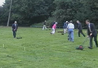 Teambuilding voor managers: Outdoor activiteit grasmaaien, verschillende choregrafieën (patronen).