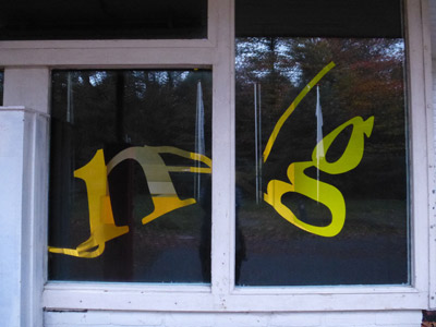 - CAPTCHA Zeng, raambelettering met licht, 2014; raamfolie, latex, TL-licht