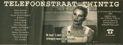 In deze groepstentoonstelling de presentatie in de kelder van de woning van het geluidswerk Work in progress, waar o.a. de graafwerkwerkaamheden te horen waren voor de virtuele metro Metrøality in Tilburg.