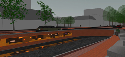 Lichtkunstwerk (ontwerp) geïntegreerd in de keerwand van een zitkuip, zich bevindend op Het Kruis in het centrum van Hoogeveen.