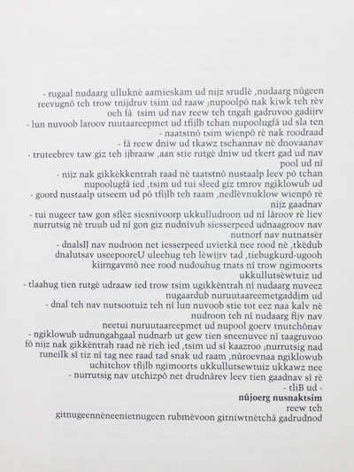 Deze teksten zijn door mij achterstevoren ingesproken op audiotapes en vervolgens weer in verstaanbare richting weergegeven, met vervreemdende intonatie.