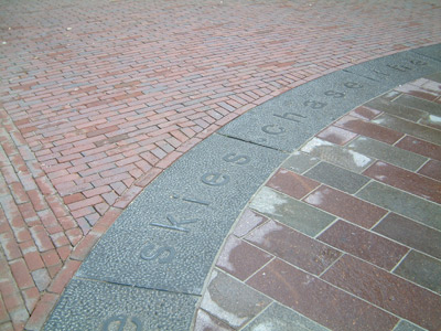 Afmetingen plein: 35m lange diameter van ellips met belettering.