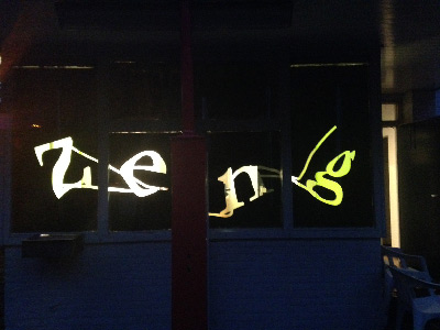 - CAPTCHA Zeng, raambelettering met licht, 2014; raamfolie, latex, TL-licht