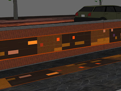 Bestaande uit 4 vitrines waarin de lichtvelden verwijzen naar turfblokken. Deze worden steeds weer opnieuw ‘gestapeld’ en verplaatsen zich daarbij ook naar links of naar rechts. Het geheel werkt als een mix tussen het de verwijzingen naar het stapelen van turfblokken en een computerspel. In de tussenliggende delen worden geglazuurde tegels aangebracht. De lichtdynamiek werkt middels een at random programmering en reageert qua intensiteit middels sensoren op de aanwezigheid van het publiek.