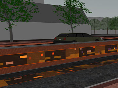 Lichtkunstwerk (ontwerp) geïntegreerd in de keerwand van een zitkuip, zich bevindend op Het Kruis in het centrum van Hoogeveen.